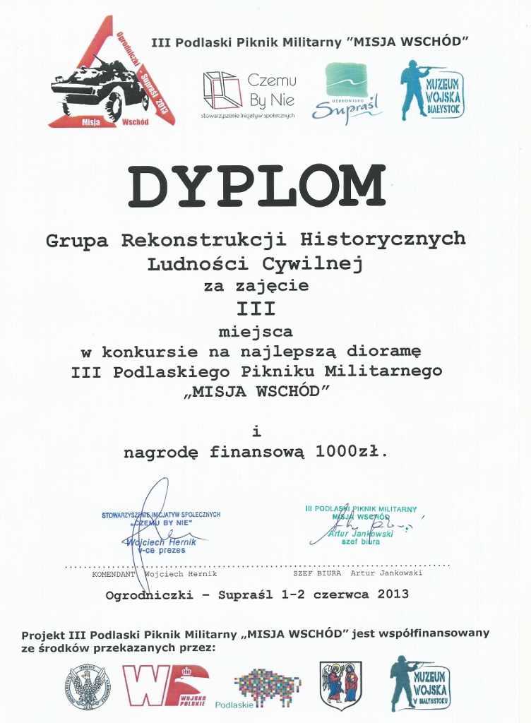 Grupa Rekonstrukcji Historycznych Ludności Cywilnej zajęła III miejsce na najlepszą dioramę.