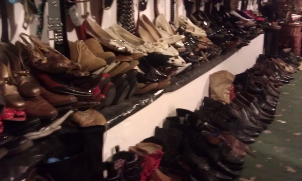 Buty, kapcie, trzewiki, sandały, oficerki, glany, ciżemki, trepki, bambosze, Relaxy itd. Prawie 500 par butów z różnych epok i w różnych rozmiarach. Typowe kostiumowe, ludowe, militarne, a także stylizowane na lata 20-te i oryginalne z czasów PRL.