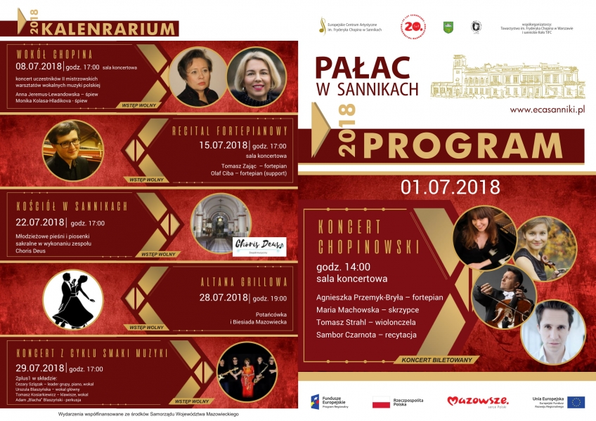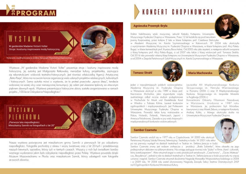 Wystawę zorganizowaną przez Europejskie Centrum Artystyczne im. Fryderyka Chopina i Koło Towarzystwa im. Fryderyka Chopina można oglądać w Pałacu w Sannikach do końca lipca 2018 roku. Wydarzenie współfinansowane jest ze środków Samorządu Województwa Mazowieckiego w ramach Projektu "100. Rocznicy Odzyskania Niepodległości".