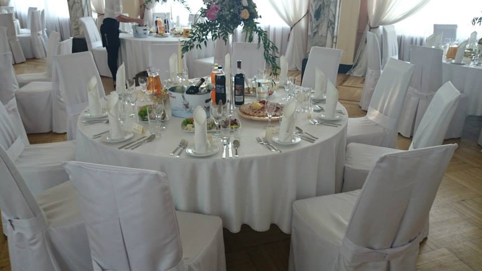 Przewidujemy stoły kilkuosobowe lub łączone we własnym gronie, nienaganne okryte płóciennymi obrusami podobnie jak krzesła, żeby goście odświętnej garderoby nie ubrudzili. Wskazane pawie... pióra, uśmiech i nienaganne maniery. W szczególności w przypadku konieczności dyskretnego wyśledzenia numerka na kotylionach pań.